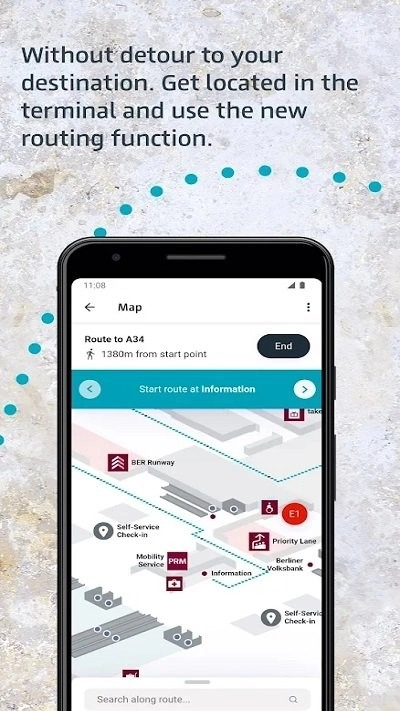 ·在地图上查看您在航站楼的位置以及前往所需目的地的步行路线