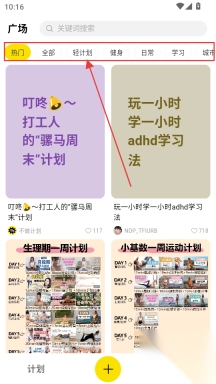 1. 进入软件,在计划界面的最上方,能看到各类可供参考的计划。