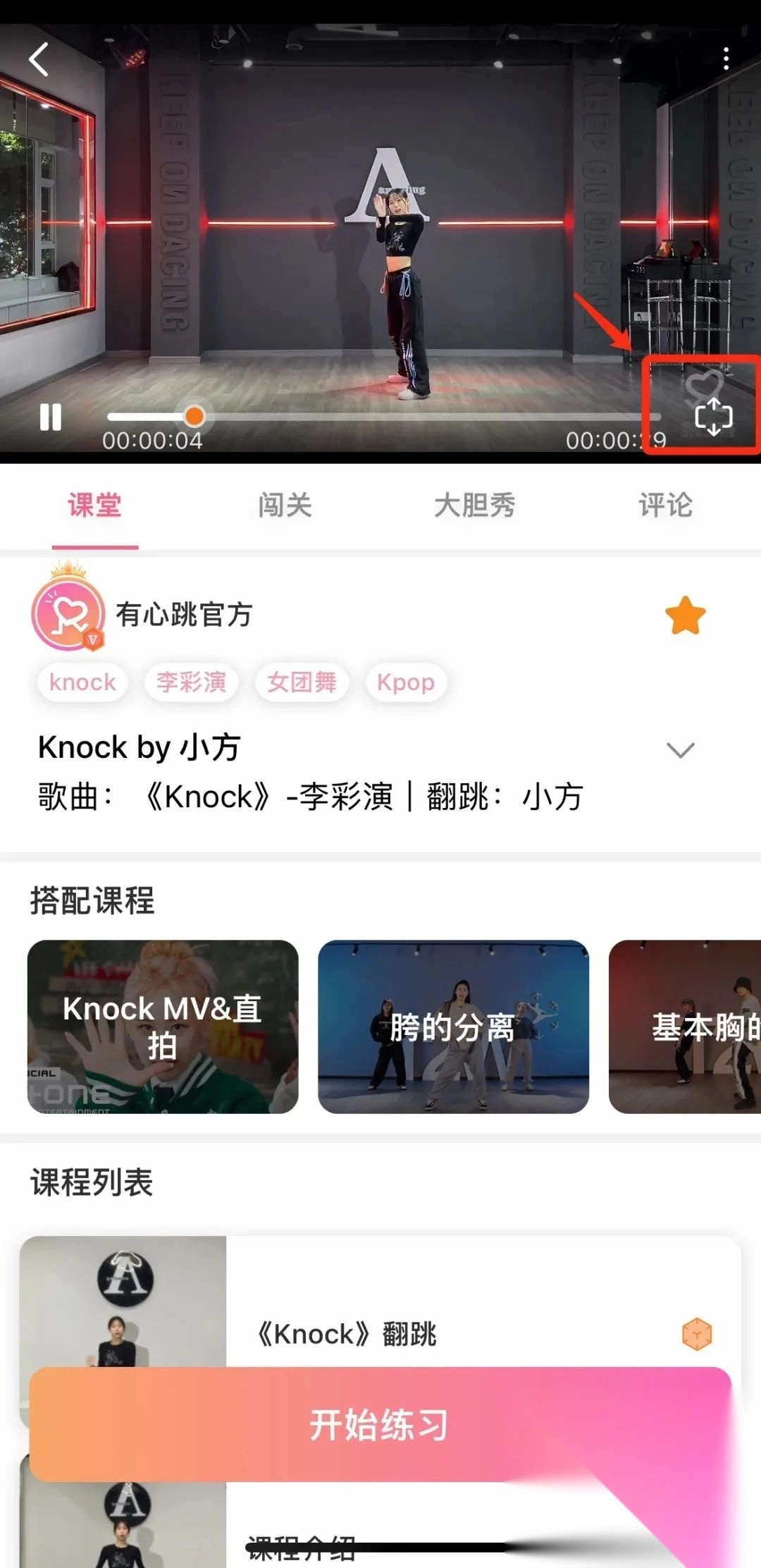 2、点击选择要练习的舞蹈,点击右下方按钮进入全屏。