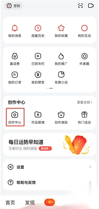 2. 进入“我的”页面,在该页面找到创作中心并点击进入。