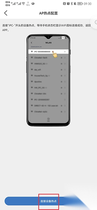 四、连接ipc-开头的WiFi后,点击连接设备热点,待设备连接完成就可以了