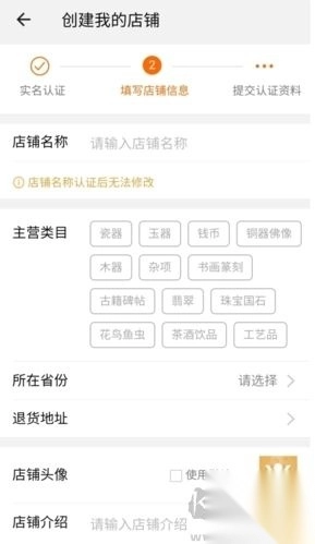 4、填写店铺名称、主营品类等信息,提交营业执照等认证资料,审核通过后即可开店。