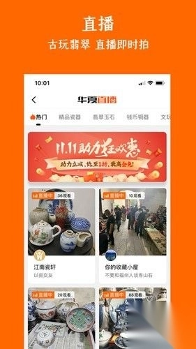 4、【直播拍卖】美女主播实时视频直播,还原现场拍卖氛围,提升参与直观性。
