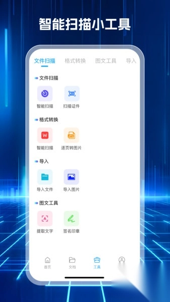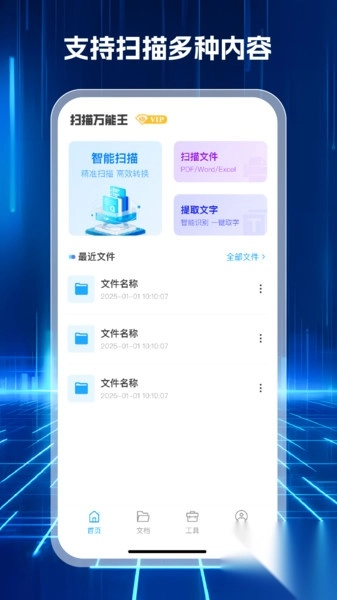 2. 首页的功能划分细致入微,能帮助大家快速开启文件扫描与识别。