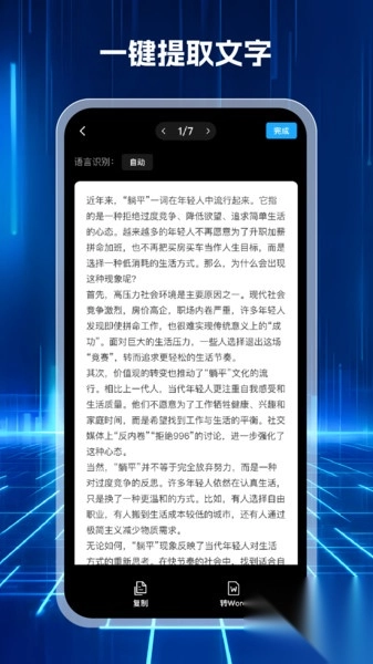 1. 高精度OCR文字识别功能:具备多语言识别能力,可迅速且精准地把图片里的文字转化成可编辑的文本。同时,识别结果会自动进行分段处理,最大程度还原原文的排版样式。