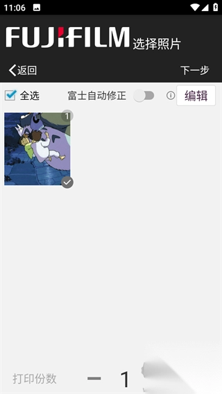 3、快速打印:通过 “相册→选择相片→富士自动修正→打印”4 步完成。