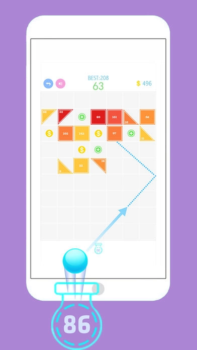 《进击的弹珠》是一款画面清新简约的趣味休闲手游,玩法类似打砖块。但它和传统打砖块游戏有别,游戏中没有挡板,且能无限发射小球,玩家只需把上方方块全部击碎就行,属于发泄类小游戏。与过往打砖块游戏不同,在《进击的弹珠》里,玩家完全不必担心小球丢失。能借助源源不断的小球去击碎无尽砖块,一心专注于破坏。这是一款极易上瘾、简单小巧的单机游戏!
