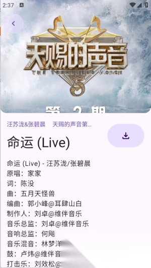 4. 寻得想听的歌曲后,点击进入,选择下载,就能保存至手机内存。