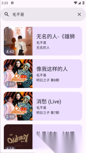 3.系统会立即显示与输入内容相关的歌曲资源,方便用户进行选择。