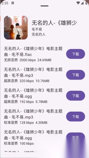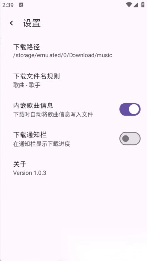 1. 应用界面设计选用浅色,能为用户带来极为友好的音乐查找与下载体验。