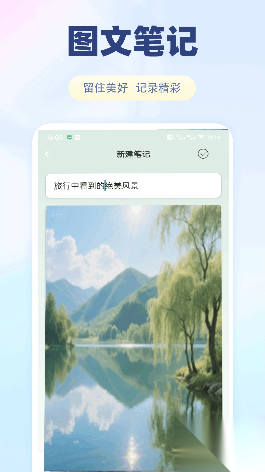 1、支持图文结合的笔记形式,让用户既能用文字描述,也能通过图片补充,更生动地记录内容。