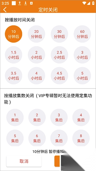 5、选择好时间后、系统会在指定时长后自动停止播放、避免长时间运行