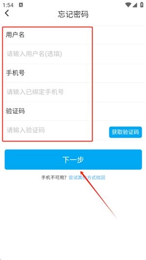 2、输入用户名、验证码等信息点击下一步,设置好新密码即可