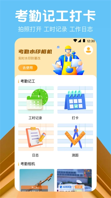 此APP不仅满足了打卡、考勤统计、工地记工、小时工记账等功能,更为您带来工程现场专属的水印拍照功能,提供时间地点和工作水印、提供经纬度、海拔、方位角、天气、位置、坐标等的时间水印、海拔相机、实时相机、时间相机。确保工地信息实时、准确。
