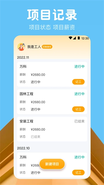 这是一款专注于工时记录与工地记工的记工时APP,具备加班记录、小时工记账、上班打卡、考勤记录以及加班记录等功能,是您记录工时与考勤的得力高效助手!