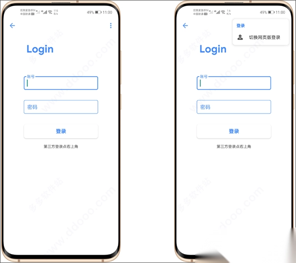 2、接着点击“登录”按钮,跳转到登录页面。选择右上角的“网页登录”选项,用手机号接收验证码完成登录。