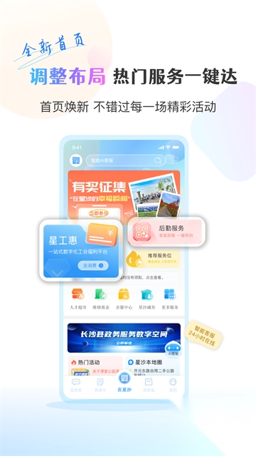 打造一站式生活服务平台,集合人才服务、金融服务、文旅消费等特色场景,接入交通出行、医疗健康、生活缴费等超200项便民服务,使市民尽情享受“在星沙”的智慧生活体验。