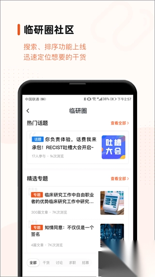 专为临床研究从业者打造的交流平台,支持行业知识分享、经验互助与职业成长。