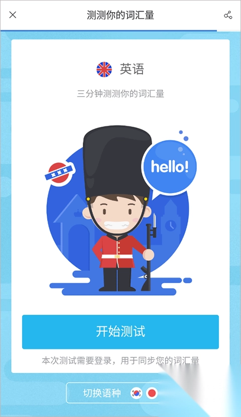 注:在测试前需要登录,用户同步您的词汇量。