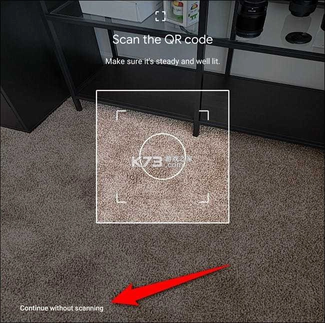 授予家庭应用程序使用相机的权限,然后扫描电视上的二维码。或者,选择“不扫描继续”链接并输入屏幕代码。