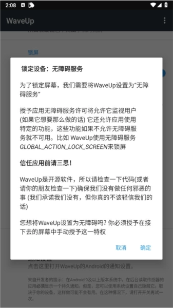 2.开启权限:打开WaveUp应用,根据提示授予所需的权限,特别是距离传感器的使用权限。