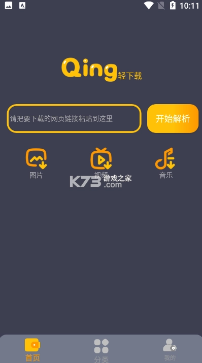 2、把需要下载的网页链接复制粘贴至搜索框,接着点击“开始解析”,待解析完成后,点击下载即可。此处支持图片、视频、音乐等多种文件格式。