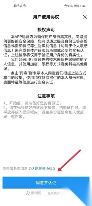 4、阅读协议,并且选择同意,就可以进入认证页面了。