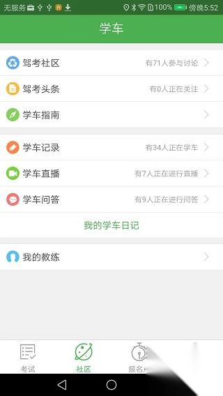 2、社区功能:系统为您提供了话题发布,驾考头条,学车指南,学车记录,学车直播,学车问答的功能,让您能够有更好的互动,快乐学习;