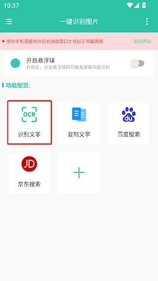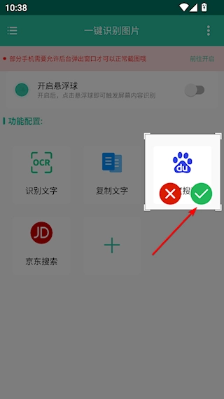 4、开启悬浮窗后,能使用悬浮球在其他界面识别