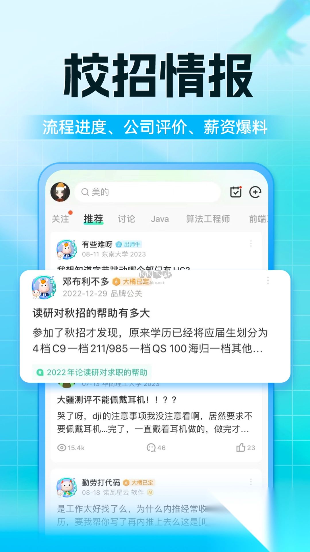 牛客app,这是一款专门针对IT行业从业者研发设计的求职软件。它为众多IT人员搭建了一个便捷的找工作平台,无论是面向社会招聘的岗位,还是适合应届生、在校学生的职位,通过这款软件,都能轻松获取相应的职位信息。感兴趣的朋友,赶快下载体验吧!