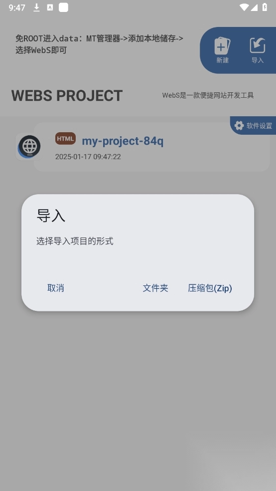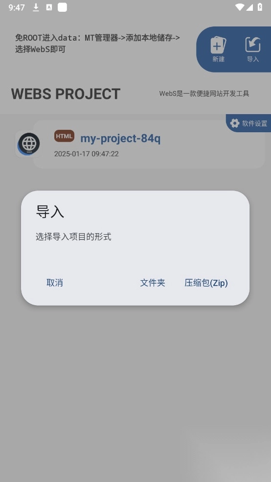 还支持导入项目