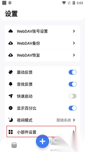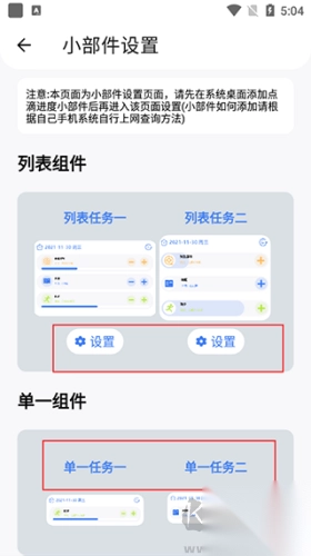 2. 通过滑动屏幕,找到下方的小部件设置,接着点击进入。
