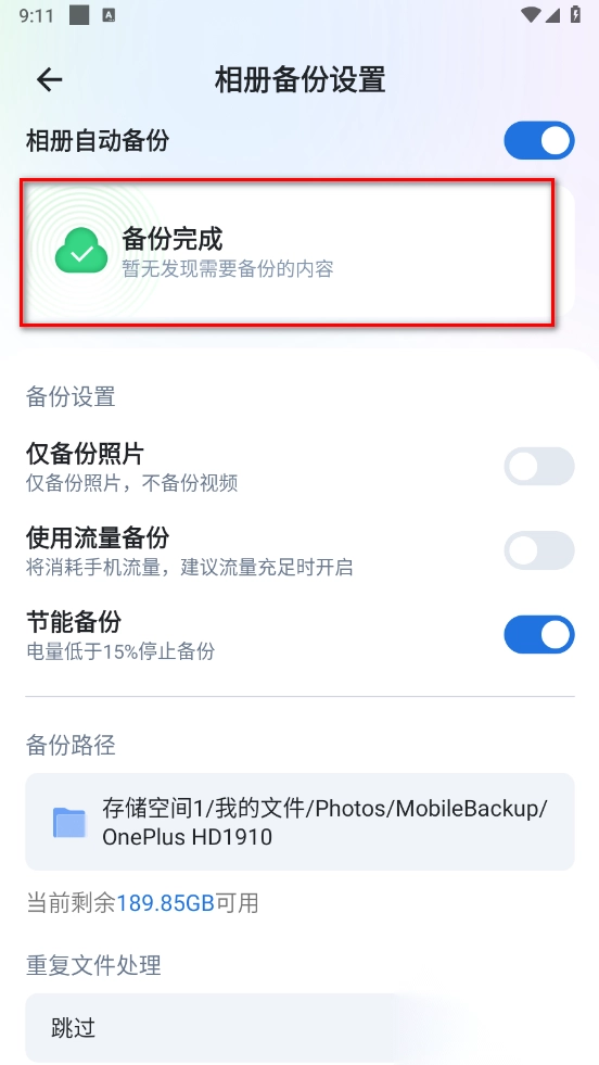 3.打开相册自动备份即可