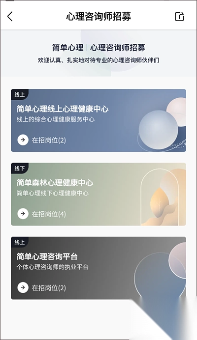 3、在【心理咨询师招募】页面,用户可根据自身的情况来选择入驻岗位
