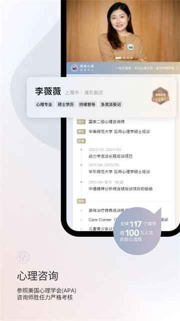 【权威资质】严格参照美国心理学会专业标准,精选持证心理咨询专家团队。