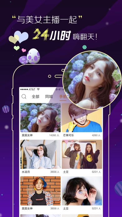 流畅高画质的真人视频直播画面,Live现场震撼音效,高清.真人视频直播,让你随时随地享受演唱会般超high秀场气氛。看真人视频直播才艺show,听K歌达人激情欢唱,视频聊天交友,享受超凡视听盛宴。