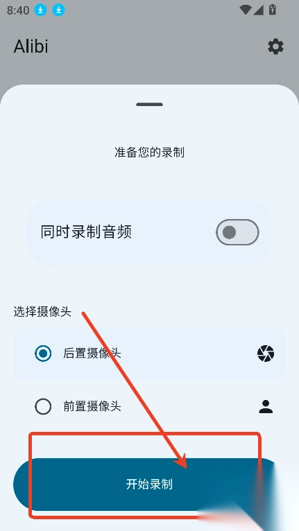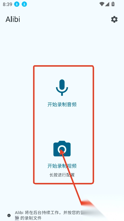 1. 进入Alibi app首页,于界面里挑选录制音频或者视频的功能选项。