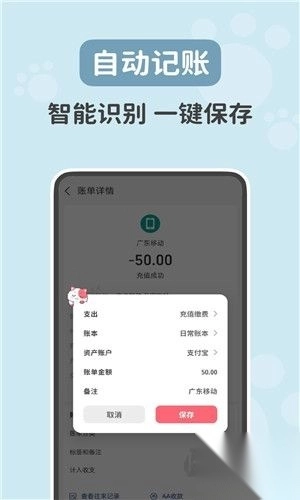 4、点击后,喵钱记账安卓版就会开启自动记账功能了。
