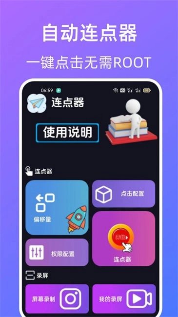 连点器自动点击屏幕,点击速度,添加点击位置,简单易上手,无需root,支持一键录制自动重复操作,轻松实现类似 按键精灵 的效果。