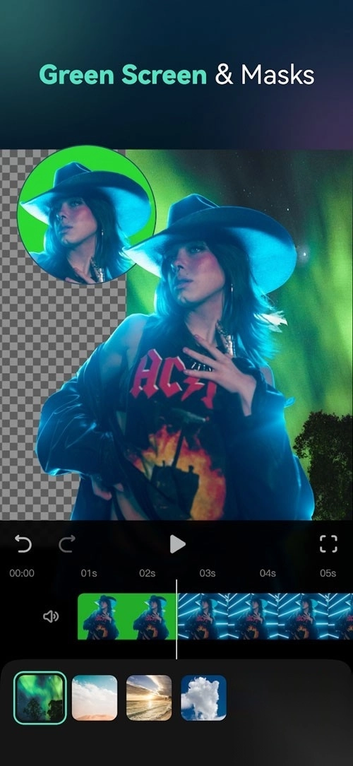 通过分层剪辑和使用绿色屏幕效果创建合成新世界。