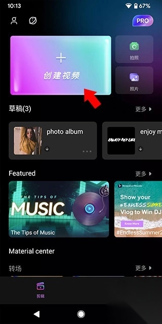 2.点击上方的“创建视频”按钮,开始创建自己的视频。