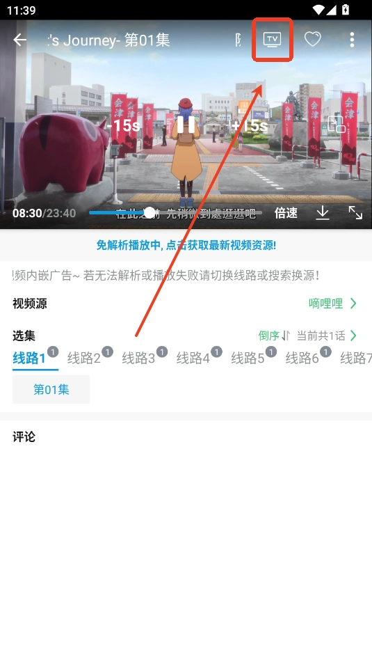 2.点击右上角TV投屏。