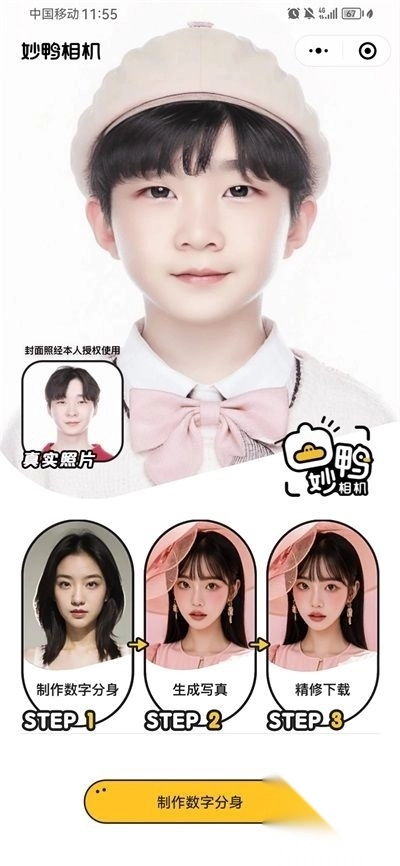 1、打开妙鸭相机app进入首页,点击制作数字分身。