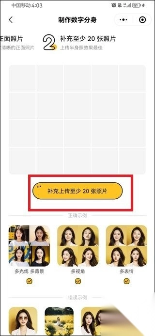 3、上传成功后,补充上传20张同一个人,不同角度表情的照片。