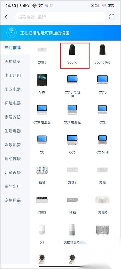 2、点击天猫精灵来添加设备,从众多型号里,精准选择对应的精灵型号。