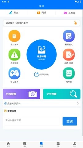 4、踏入练题板块,借助多样化方式更便捷地练习题目,知悉自身模考成绩相关信息。