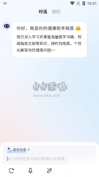 1、借助讯飞晓医软件与医生展开沟通互动,无论是症状自查、用药建议,亦或是报告解读,足不出户就能获取专业医生的意见。