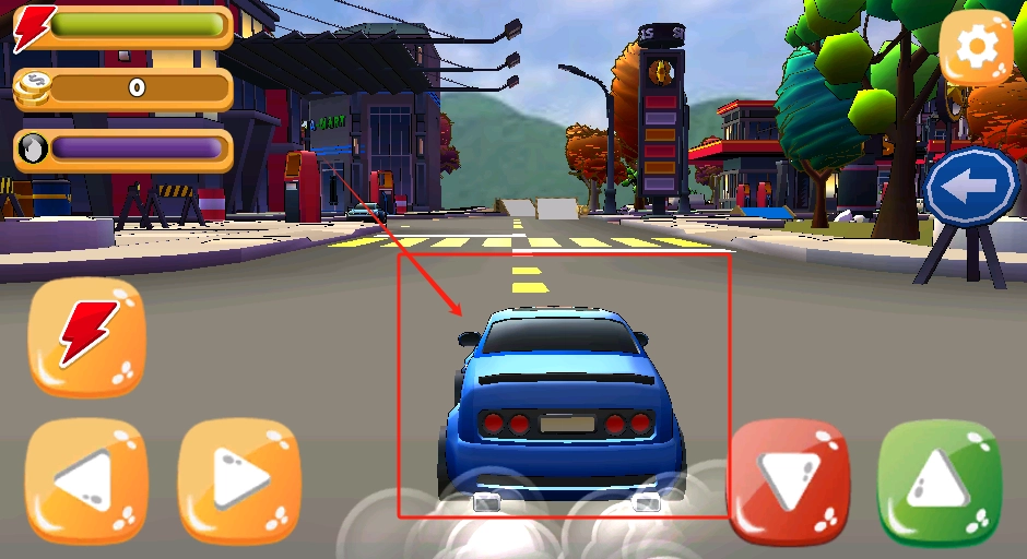 3、用屏幕下方的左右箭头控制赛车方向,避开障碍物往前开。