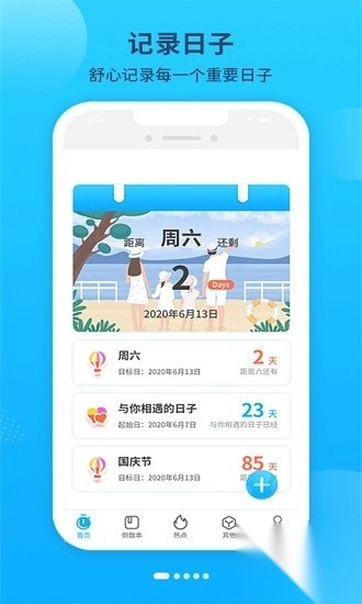 倒数恋爱与纪念日 快来这里记录你生命中所有重要的事件吧!它能时刻提醒你那些关键事务,无论是生活、工作,还是学习方面,都能开启倒计时模式。只要打开这款软件,重要之事便会时刻映入眼帘,再也不用担心遗忘。不仅如此,线上还支持分享自己设置的倒计时,有需求的朋友,欢迎下载体验!
