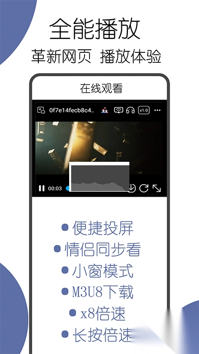 2、观影模式具备多元化功能:可拓浏览器的观影模式,除了支持多种播放设置,还提供投屏与下载功能。如此一来,用户不仅能够随时随地观看心仪的视频内容,还能够将其投射至其他设备,亦或下载到本地,方便随时观赏。